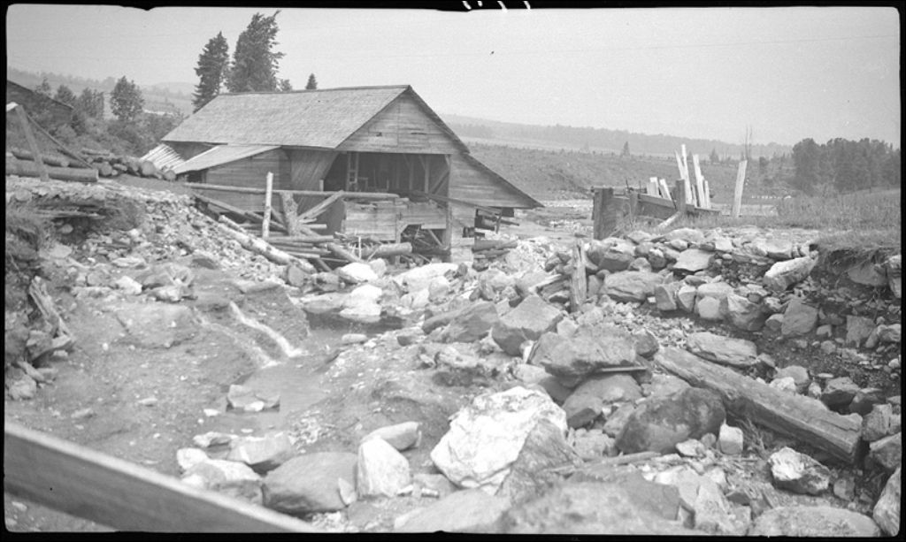 Chemin vis-à-vis du lot 20 à Saint-Jacques, canton Wolfe, 1942, Archives nationales à Québec, Fonds Ministère de la Culture et des Communications, (03Q,E6,S7,SS1,D2,P7711), Irénée Beaudet.