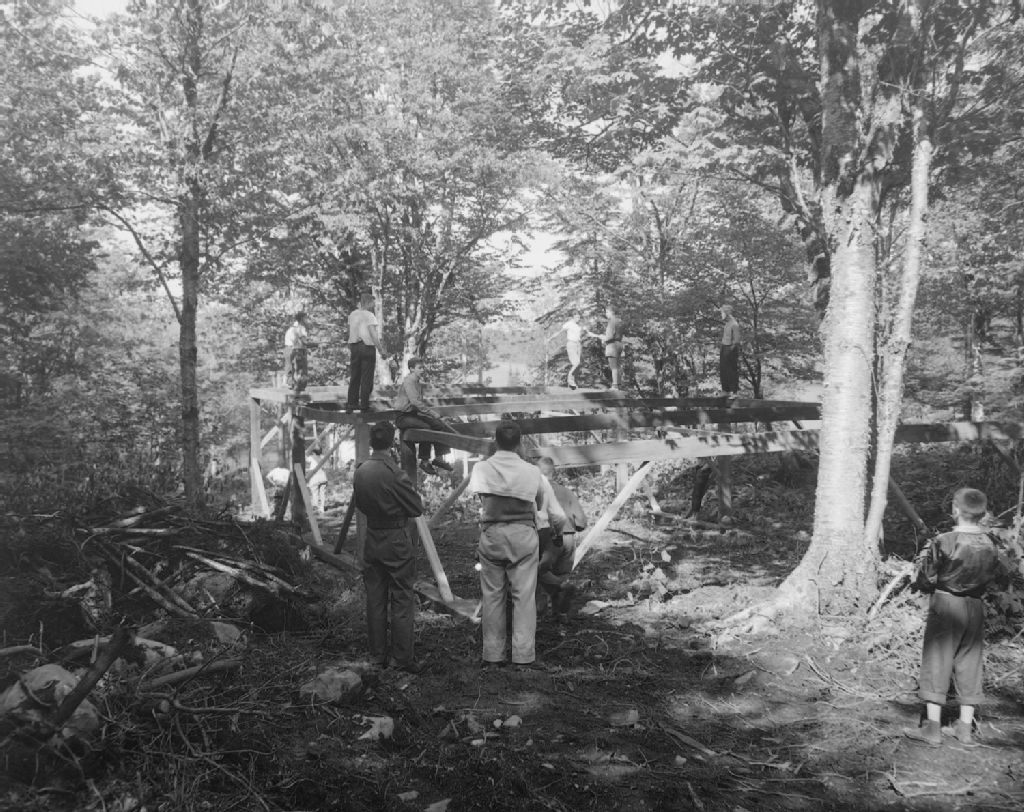 Pratique d'équilibre sur la piste d'hébertisme au camp école du lac Trois-Saumons
