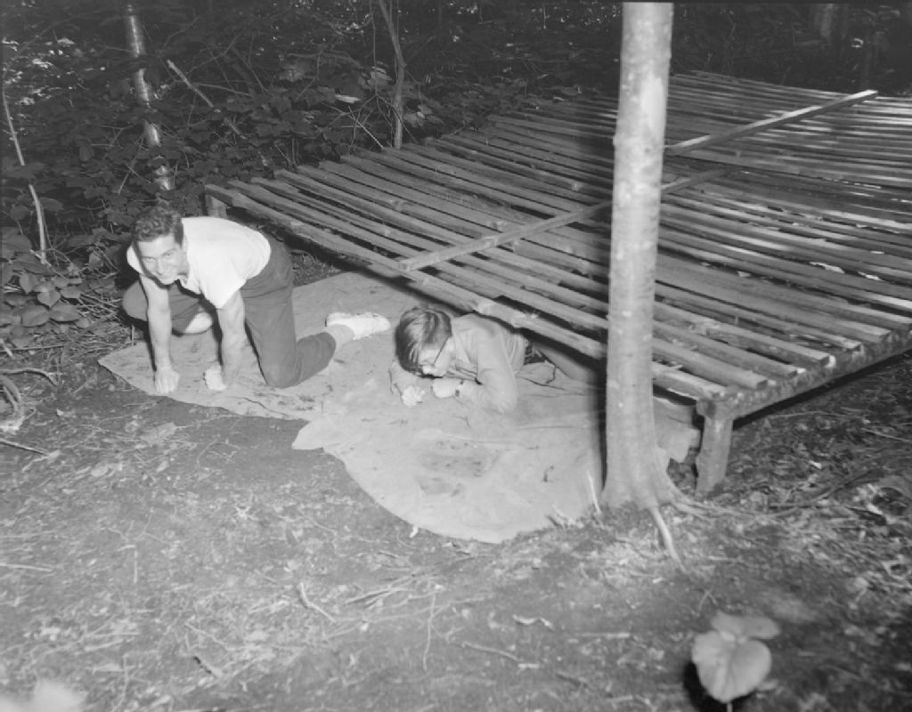 Exercices de rampement sur la piste d'hébertisme au camp école du lac Trois-Saumons