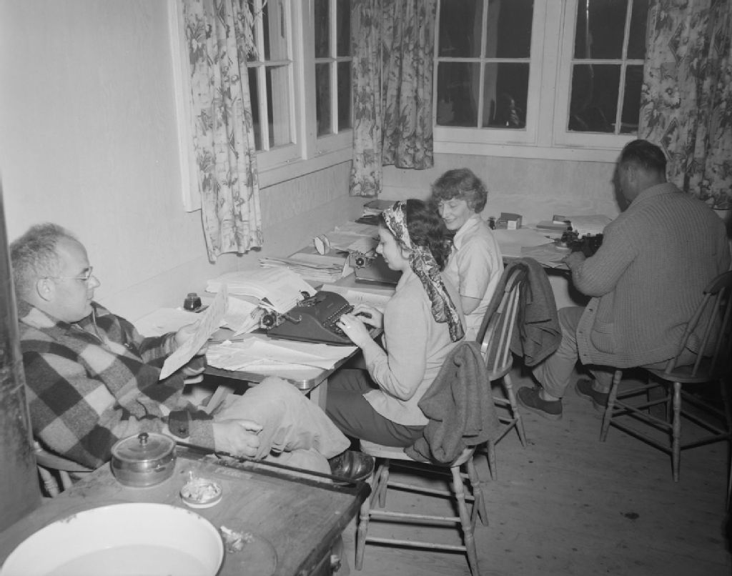 Le travail à l'école provinciale au lac Trois-Saumons, 1950, Archives nationales à Québec, Fonds Ministère de la Culture et des Communications, (03Q,E6,S7,SS1,D2,P77401), Neuville Bazin.