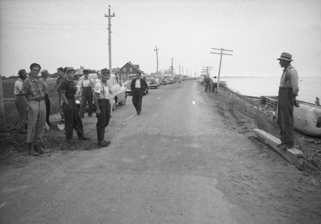 Route no. 6 et approches de la route. Dossier après accident de la route avec autobus Baie-des-Chaleurs. Bonaventure., 1950, Archives nationales à Québec, Fonds Ministère de la Culture et des Communications, (03Q,E6,S7,SS1,D2,P77603), Maurice Gravel.