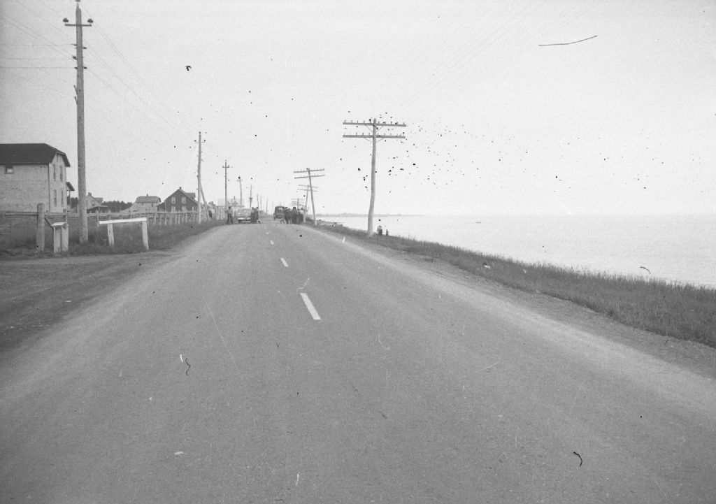 Route no. 6 et approches de la route. Dossier après accident de la route avec autobus Baie-des-Chaleurs. Bonaventure.