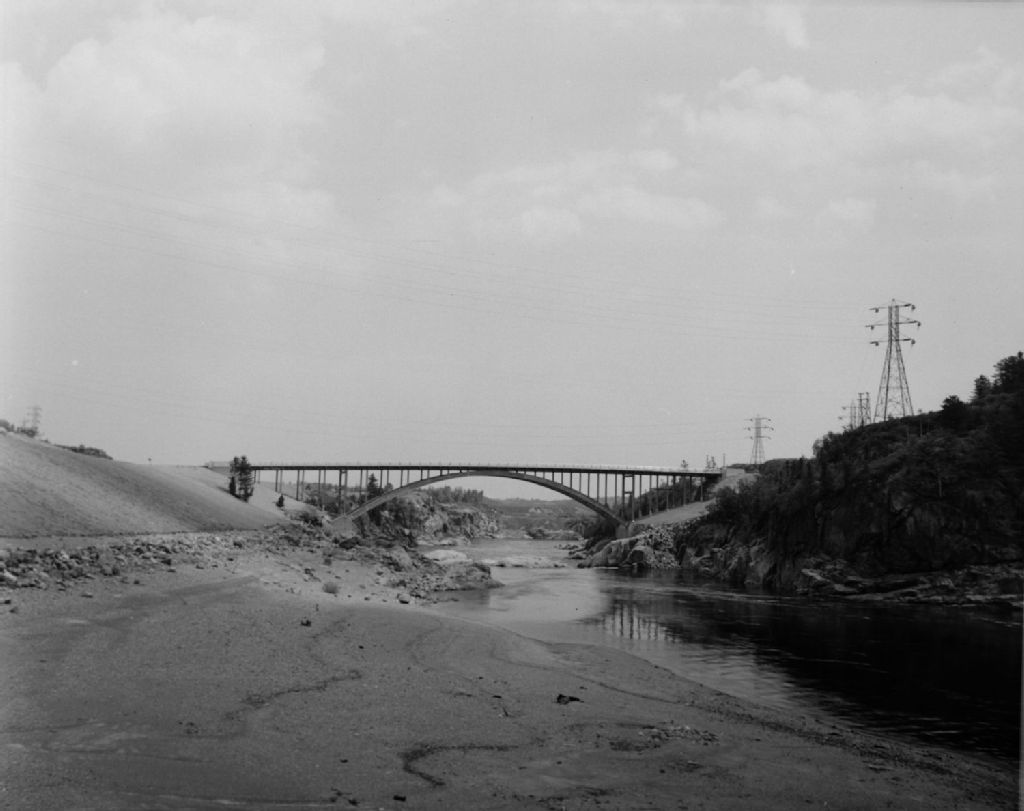 Inauguration, par le premier ministre Maurice Duplessis, du pont d'aluminium d'Arvida au dessus de la rivière Saguenay à l'usine ShipShaw no 2., 1950, Archives nationales à Québec, Fonds Ministère de la Culture et des Communications, (03Q,E6,S7,SS1,D2,P77694), Neuville Bazin.