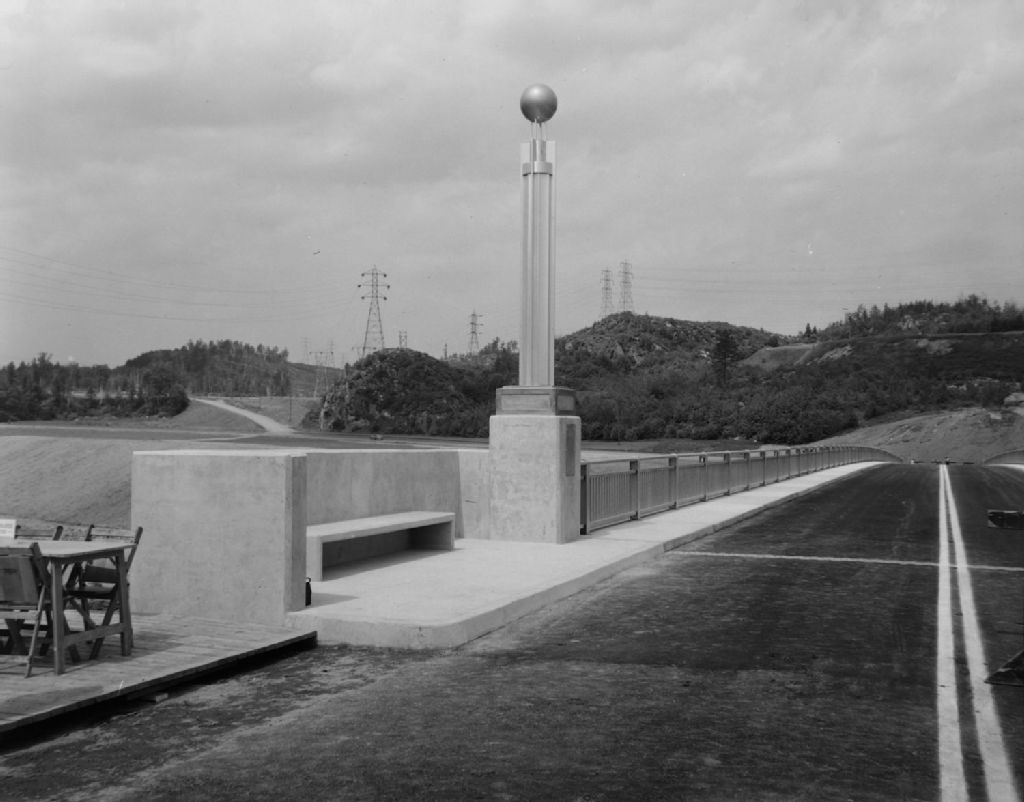 Inauguration, par le premier ministre Maurice Duplessis, du pont d'aluminium d'Arvida au dessus de la rivière Saguenay à l'usine ShipShaw no 2., 1950, Archives nationales à Québec, Fonds Ministère de la Culture et des Communications, (03Q,E6,S7,SS1,D2,P77695), Neuville Bazin.