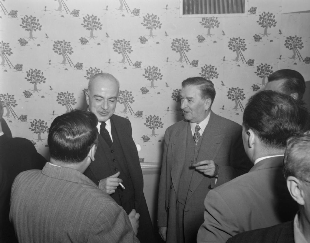 Inauguration, par le premier ministre Maurice Duplessis, du pont d'aluminium d'Arvida au dessus de la rivière Saguenay à l'usine ShipShaw no 2., 1950, Archives nationales à Québec, Fonds Ministère de la Culture et des Communications, (03Q,E6,S7,SS1,D2,P77709), Neuville Bazin.