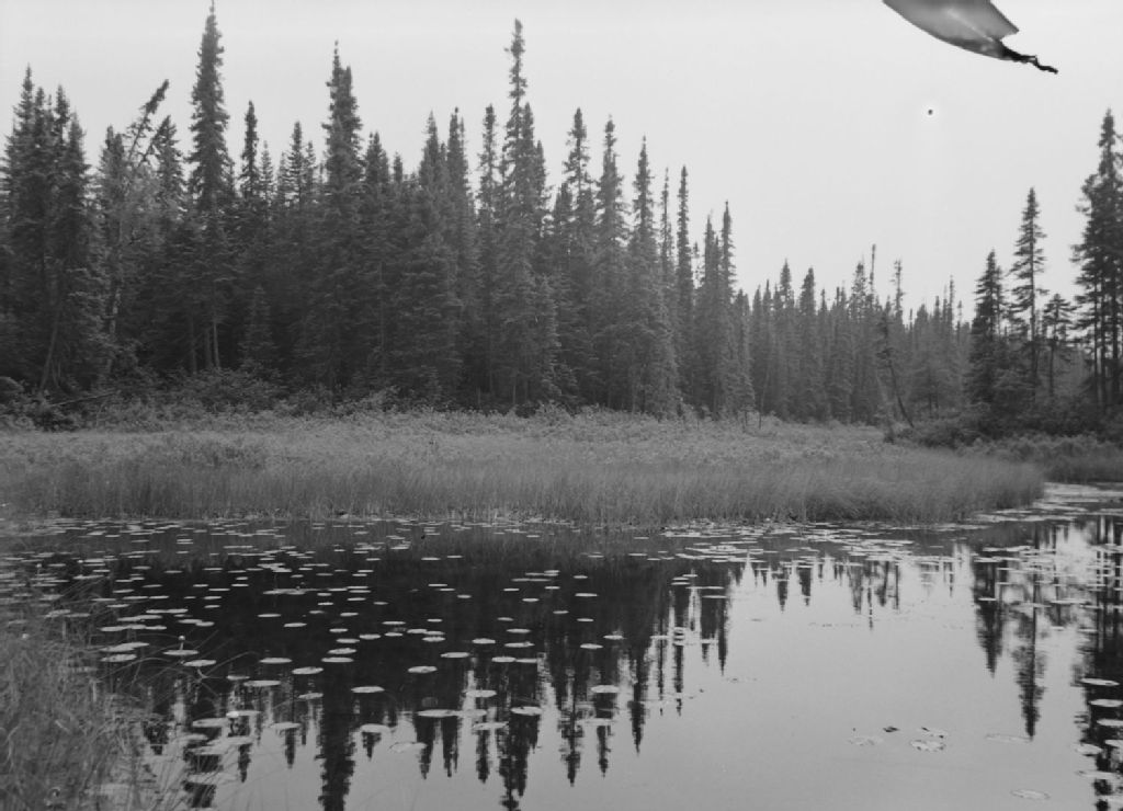 Tourbière et étang, ruisseauà nénuphar, épinettes noires, Canton Quenel