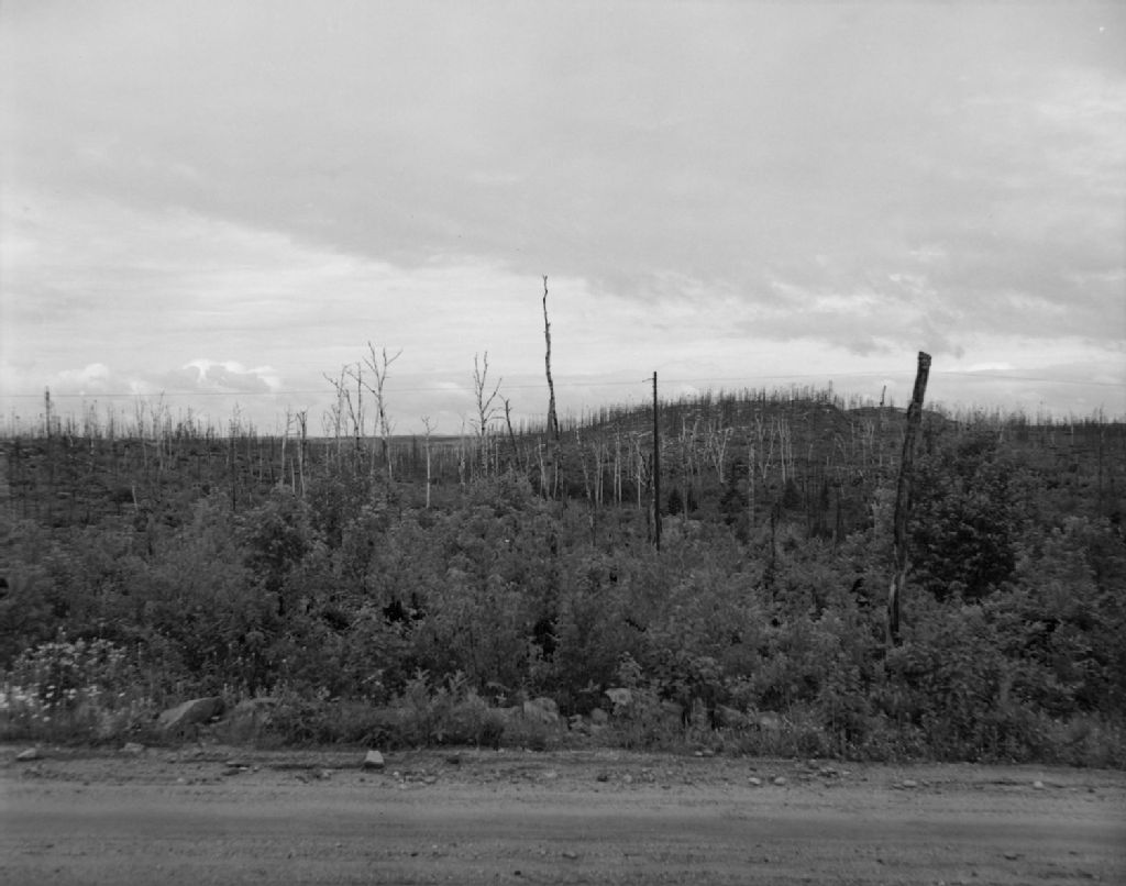 Aspect d'une forêt incendiée il y a 10 ans, Baie-Comeau, 1950, Archives nationales à Québec, Fonds Ministère de la Culture et des Communications, (03Q,E6,S7,SS1,D2,P78087), Paul Carpentier.