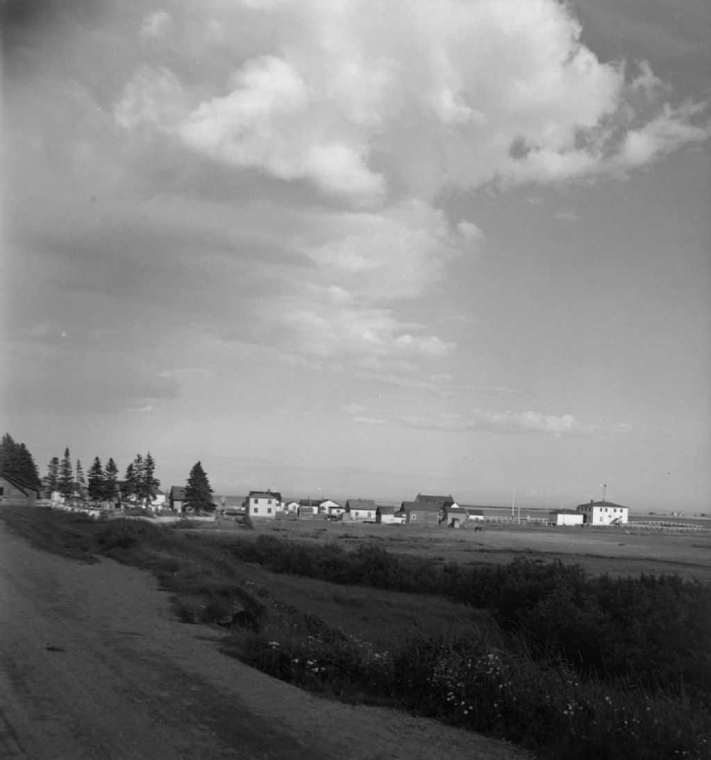 Un coin du village indien de Betsiamites, 1950, Archives nationales à Québec, Fonds Ministère de la Culture et des Communications, (03Q,E6,S7,SS1,D2,P78128), Paul Carpentier.