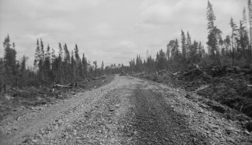 Vue du chemin en réparation. Chemin Senneterre. Lac Madeleine.