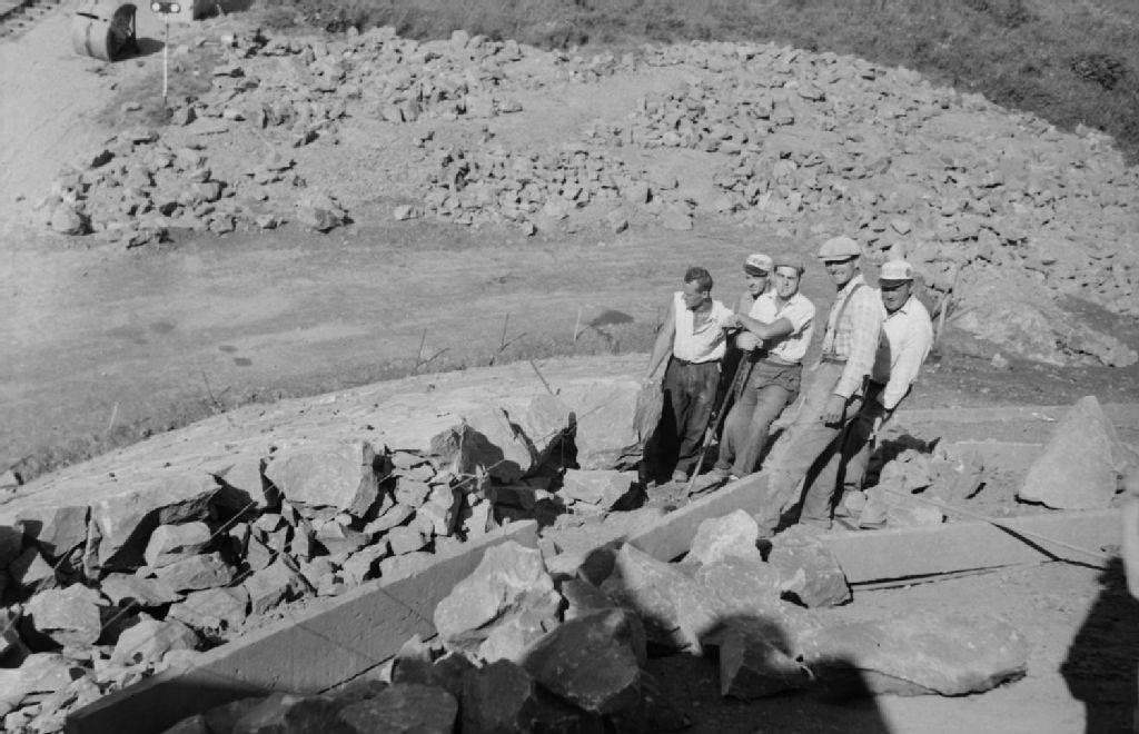 Pont de Québec sur le fleuve Saint-Laurent entre Sainte-Foy comté Québec et Saint-Nicolas comté Lévis, 1950, Archives nationales à Québec, Fonds Ministère de la Culture et des Communications, (03Q,E6,S7,SS1,D2,P78487), Camille Milot.
