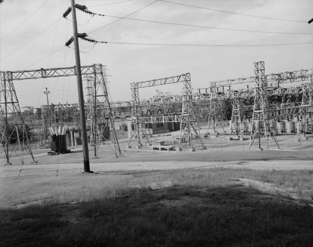 Centrale électrique Hemming Falls à Drummondville, 1950, Archives nationales à Québec, Fonds Ministère de la Culture et des Communications, (03Q,E6,S7,SS1,D2,P78650), Paul Carpentier.