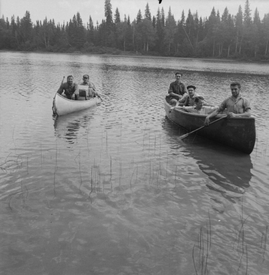 On dirait que "c'est arrangé avec le gars des vues" mais le photographe est là quand ces deux équipes arrivent pour gagner le territoire où elles travailleront à la classification des sols brigade Guy Bernard, canton Thémines, Abitibi