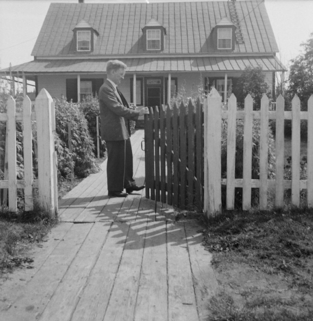 Georges Duchemin Chef de district à Amos, devant la maison de la cie de la Baie d'Hudson, Rupert House, Baie James, 1950, Archives nationales à Québec, Fonds Ministère de la Culture et des Communications, (03Q,E6,S7,SS1,D2,P78871), Gérard Ouellet.