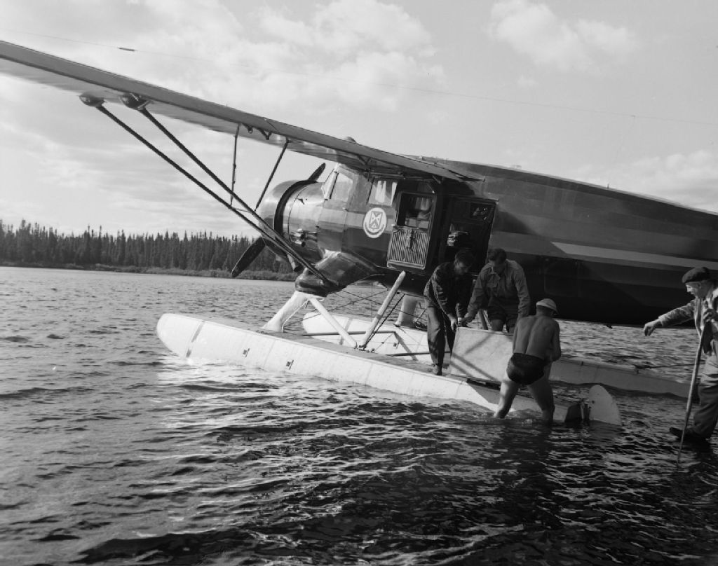 Transport aérien des castors devant être libérés dans les eaux de la réserve Mistassini, Grand Lac Mistassini, 1950, Archives nationales à Québec, Fonds Ministère de la Culture et des Communications, (03Q,E6,S7,SS1,D2,P79093), Gustave Bédard.