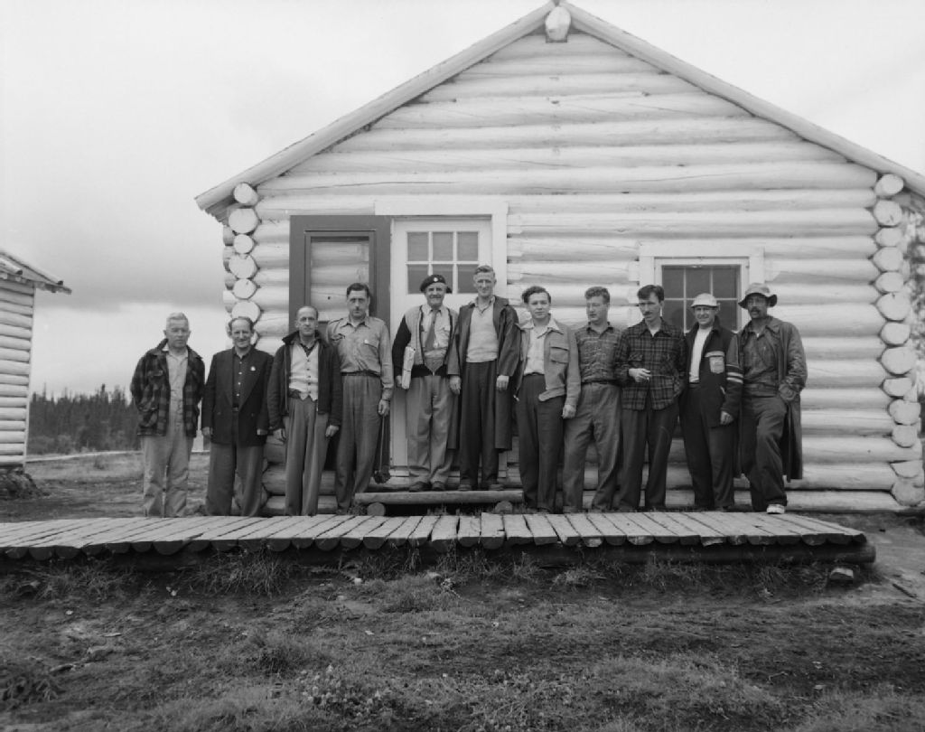 Le ministre de la Chasse et de la Pêche, l'Honorable Camille-Eugène Pouliot avec des membres du personnel de la Hudson's Bay Co. et de la McLeod Fur Frading Co. au Grand Lac Mistassini