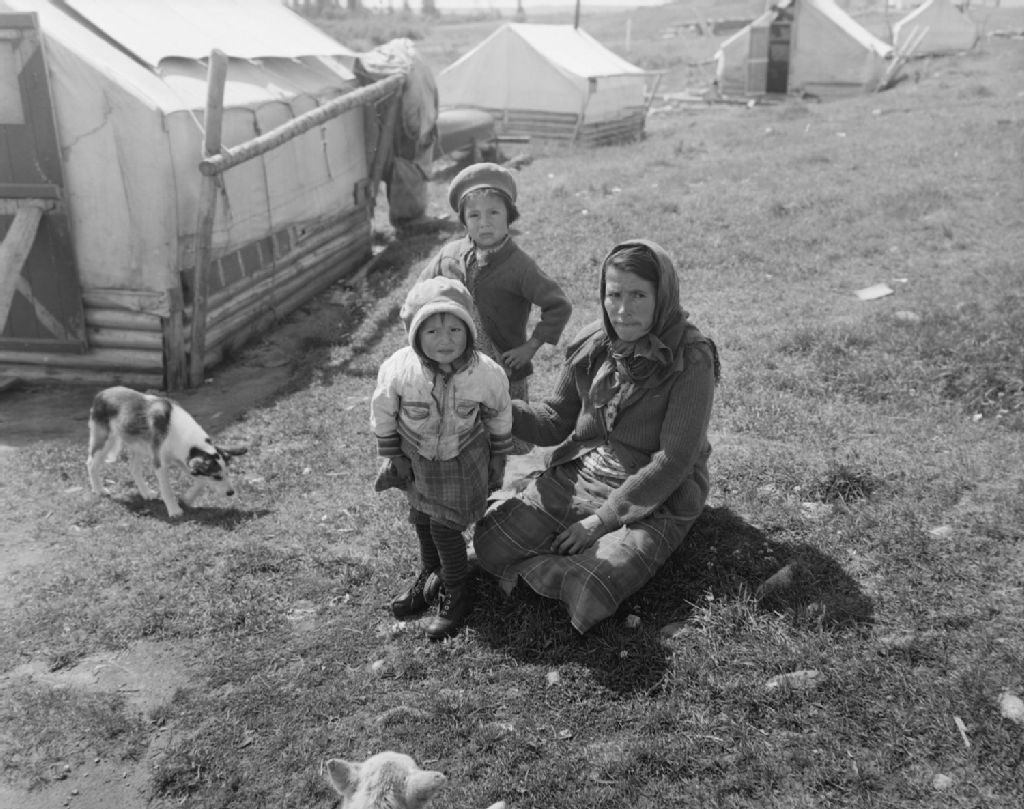 Une mére Cris et ses enfants près de leur tente, Grand Lac Mistassini