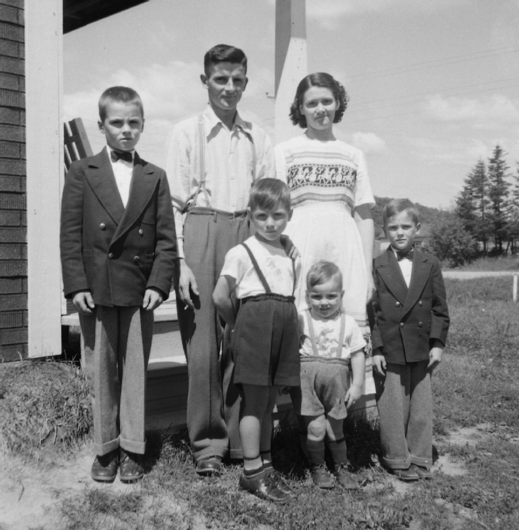 La famille Horace Denis (4 enfants), Saint-Ulbad de Portneuf, 1950, Archives nationales à Québec, Fonds Ministère de la Culture et des Communications, (03Q,E6,S7,SS1,D2,P79402), Gérard Ouellet.
