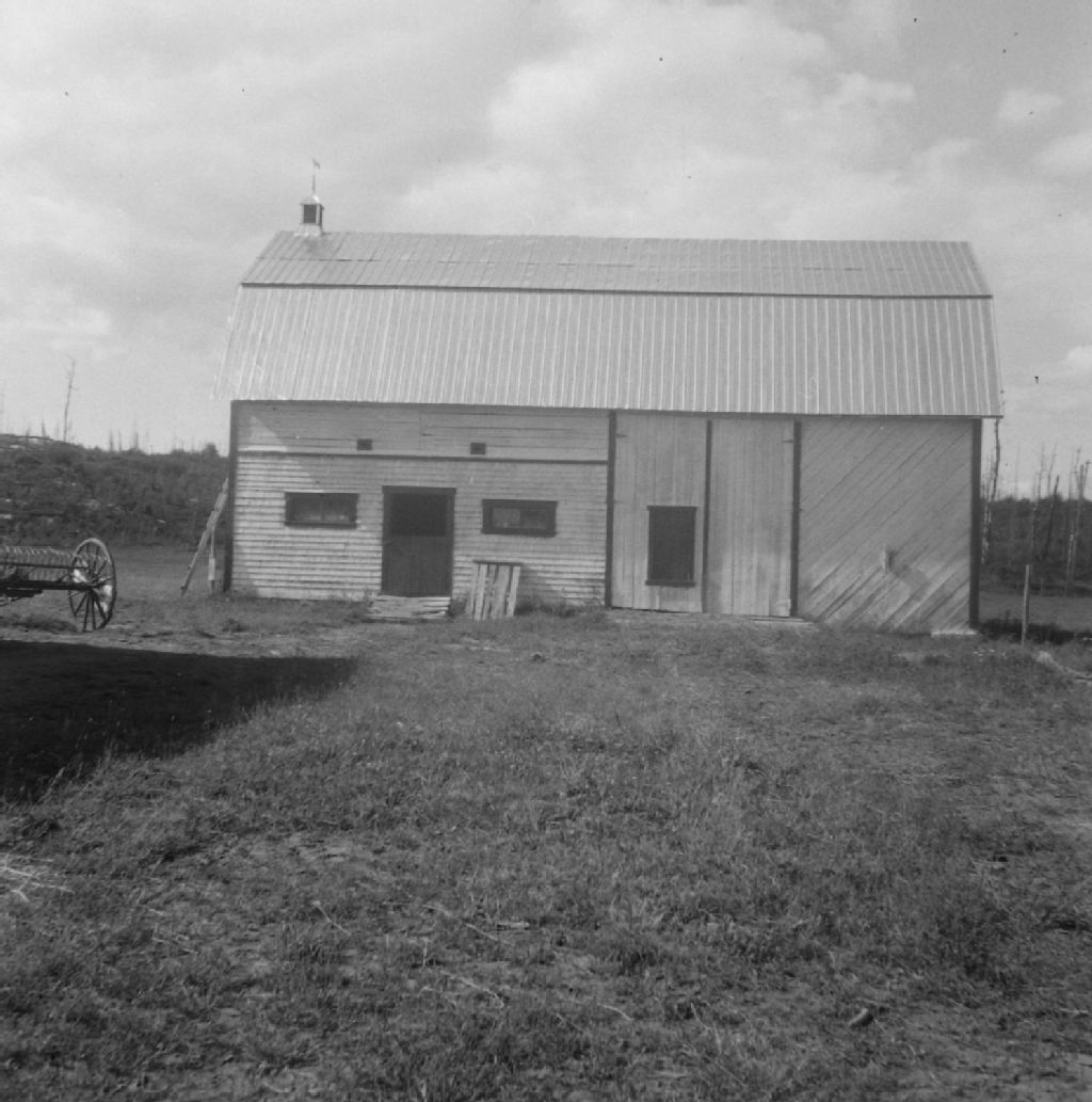 La grange d'Eugène Fillion, Sainte-Thérèse de Colombier, Saguenay, 1950, Archives nationales à Québec, Fonds Ministère de la Culture et des Communications, (03Q,E6,S7,SS1,D2,P79517), Gérard Ouellet.