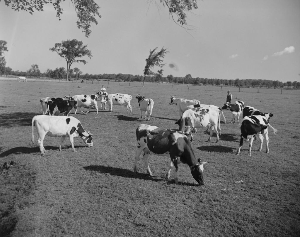 Troupeau dans le champ chez Arthur Leroux à Saint-Clet, comté Soulanges.