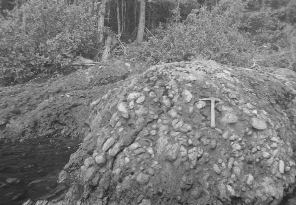 Comglomerate ont the Waconichi series (huronian). Waconichi lake, O'Sullivan Twp.
