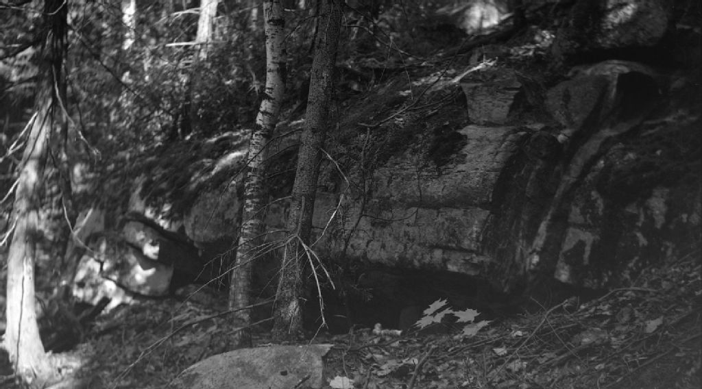 Bloc de roche décanté au flanc de la montagne à l'est du Lac Crystal. Kilkenney, comté Montcalm.