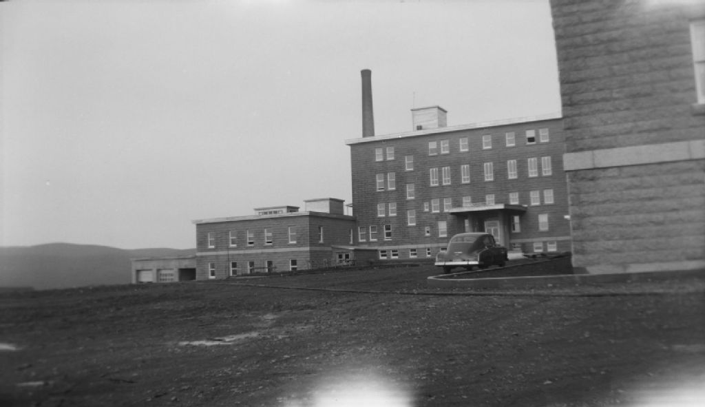 Approches de l'entrée du Sanatorium de Gaspé, Gaspé, comté de Gaspé-Sud, 1950, Archives nationales à Québec, Fonds Ministère de la Culture et des Communications, (03Q,E6,S7,SS1,D2,P79847), Jean Bastien.