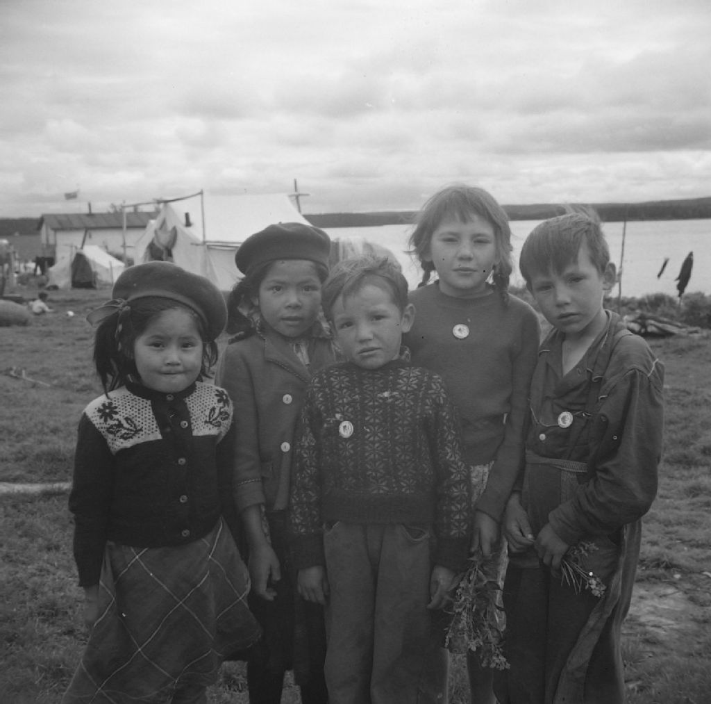 Groupe de jeunes amérindiens Cris au Grand Lac Mistassini, 1950, Archives nationales à Québec, Fonds Ministère de la Culture et des Communications, (03Q,E6,S7,SS1,D2,P80216), Gustave Bédard.