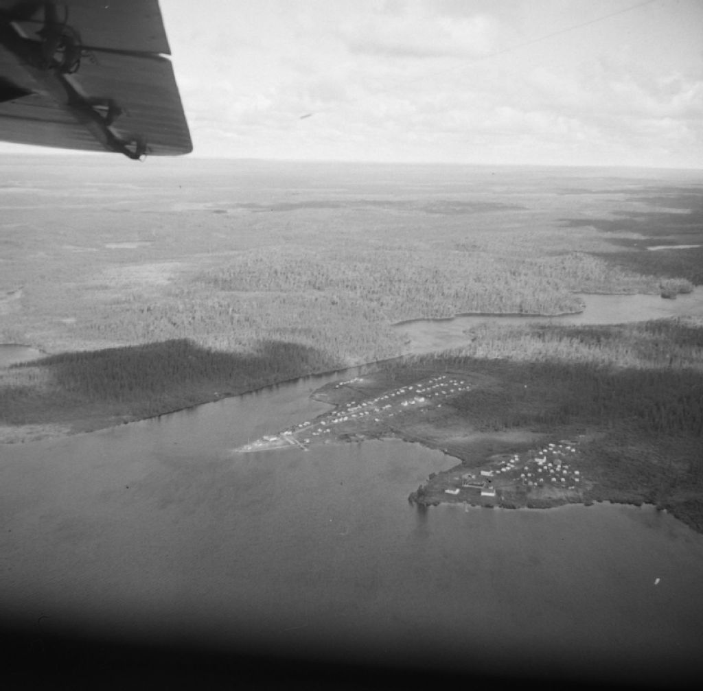 Poste de la Hudson's Bay Co. et des amérindiens Cris au Grand Lac Mistassini, 1950, Archives nationales à Québec, Fonds Ministère de la Culture et des Communications, (03Q,E6,S7,SS1,D2,P80236), Gustave Bédard.