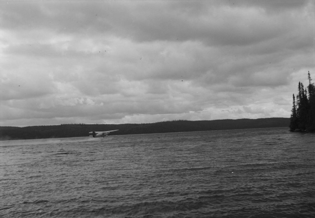 Norseman de la Mont-Laurier Aviation Co. décollant du la Waconichi. Territoire de Mistassini., 1950, Archives nationales à Québec, Fonds Ministère de la Culture et des Communications, (03Q,E6,S7,SS1,D2,P80290), J. E. Gilbert.