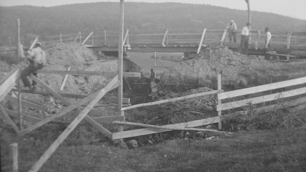 Pont temporaire sur le cours d'eau Edmond Girard sur la route 15 à Petites Bergeronnes, comté de Saguenay