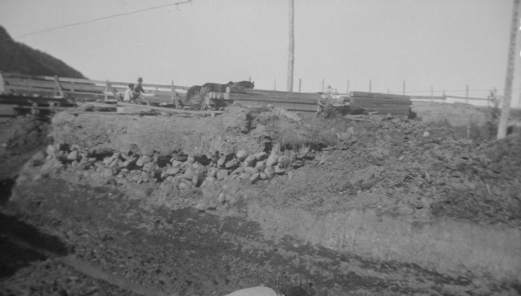 Pont temporaire sur le cours d'eau Edmond Girard sur la route 15 à Petites Bergeronnes, comté de Saguenay, 1950, Archives nationales à Québec, Fonds Ministère de la Culture et des Communications, (03Q,E6,S7,SS1,D2,P80516), Jules Carbonneau.