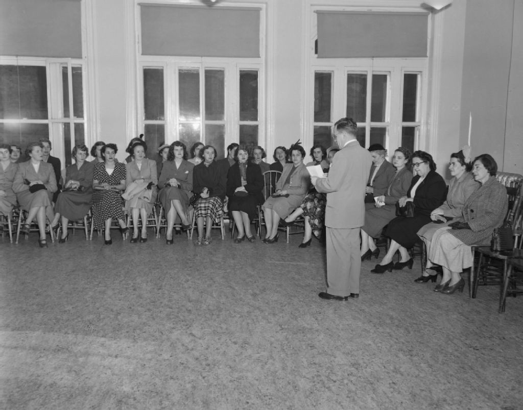 Cours d'art culinaire, Monsieur Noel adressant la parole. Québec, 1950, Archives nationales à Québec, Fonds Ministère de la Culture et des Communications, (03Q,E6,S7,SS1,D2,P80598), Neuville Bazin.