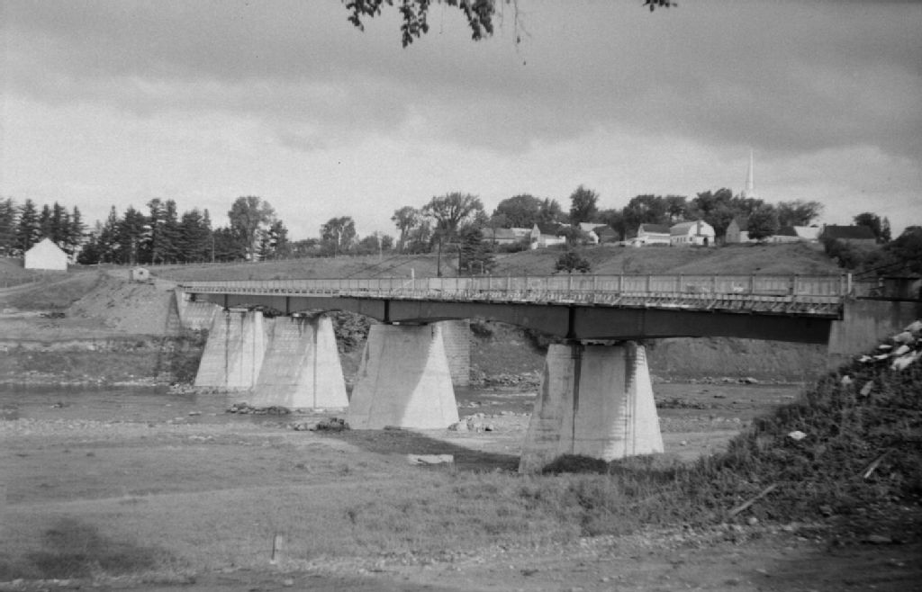 Nouveau pont , Sainte-Monique, comté Nicolet, 1950, Archives nationales à Québec, Fonds Ministère de la Culture et des Communications, (03Q,E6,S7,SS1,D2,P80803), Louis-Philippe Poudrier.