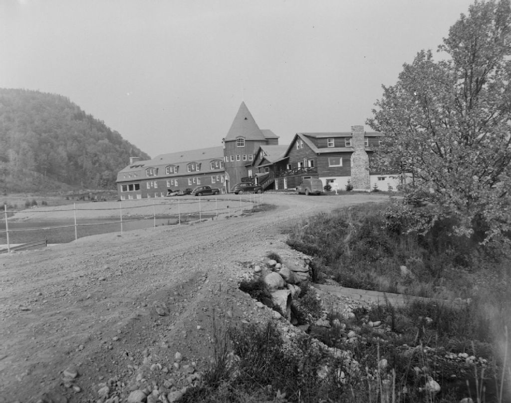 Visite des sous-ministres de l'industrie et de commerce à Valcartier Lodge, 1950, Archives nationales à Québec, Fonds Ministère de la Culture et des Communications, (03Q,E6,S7,SS1,D2,P80983), Neuville Bazin.