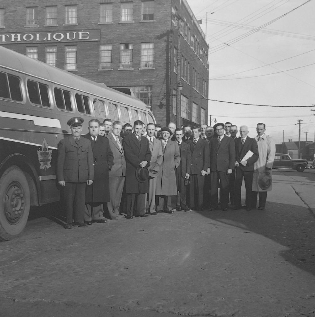 Départ d'un groupe d'agriculteurs québécois pour le Vermont afin de visiter des fermes herbagères. Québec