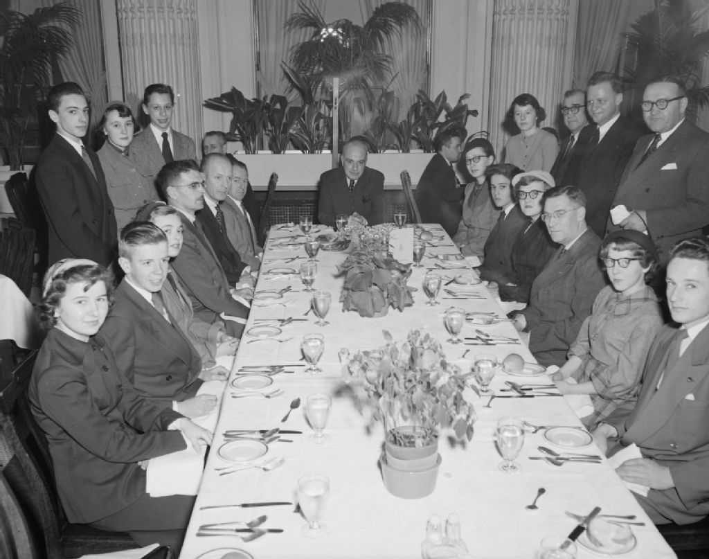 Élèves de l'école secondaire d'Arvida, au Saguenay, en visite au Parlement le 22 février reçus par l'honorable Antonio Talbot, député de Chicoutimi et Ministre de la voirie. Accompagnant les élèves, M. Harold Colder, directeur de l'école et M. W. M. Cottingham, député d'Argenteuil à la législature., 1951, Archives nationales à Québec, Fonds Ministère de la Culture et des Communications, (03Q,E6,S7,SS1,D2,P81692), Neuville Bazin.