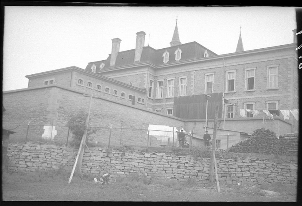 Palais de Justice et prison, vue postérierue montrant le mur de soutènement à Hull