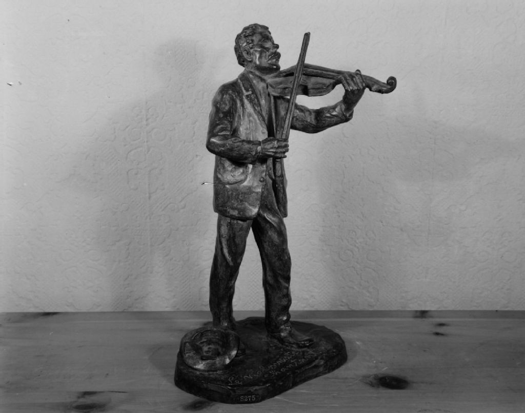 Le violoneux chantant par Alfred Laliberté au Musée de la province, 1950, Archives nationales à Québec, Fonds Ministère de la Culture et des Communications, (03Q,E6,S7,SS1,D2,P81807), Neuville Bazin.
