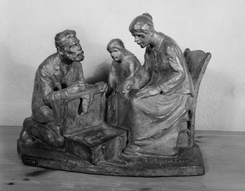 Le colporteur par Alfred Laliberté au Musée de la province, 1950, Archives nationales à Québec, Fonds Ministère de la Culture et des Communications, (03Q,E6,S7,SS1,D2,P81853), Neuville Bazin.