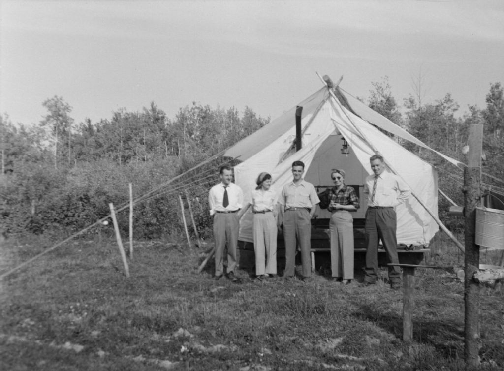 Équipe ambulante de la Croix-Rouge lors de leur passage au tentement de la Brigade A classification des sols, 1950, Archives nationales à Québec, Fonds Ministère de la Culture et des Communications, (03Q,E6,S7,SS1,D2,P81963), Dumont, Benoit.