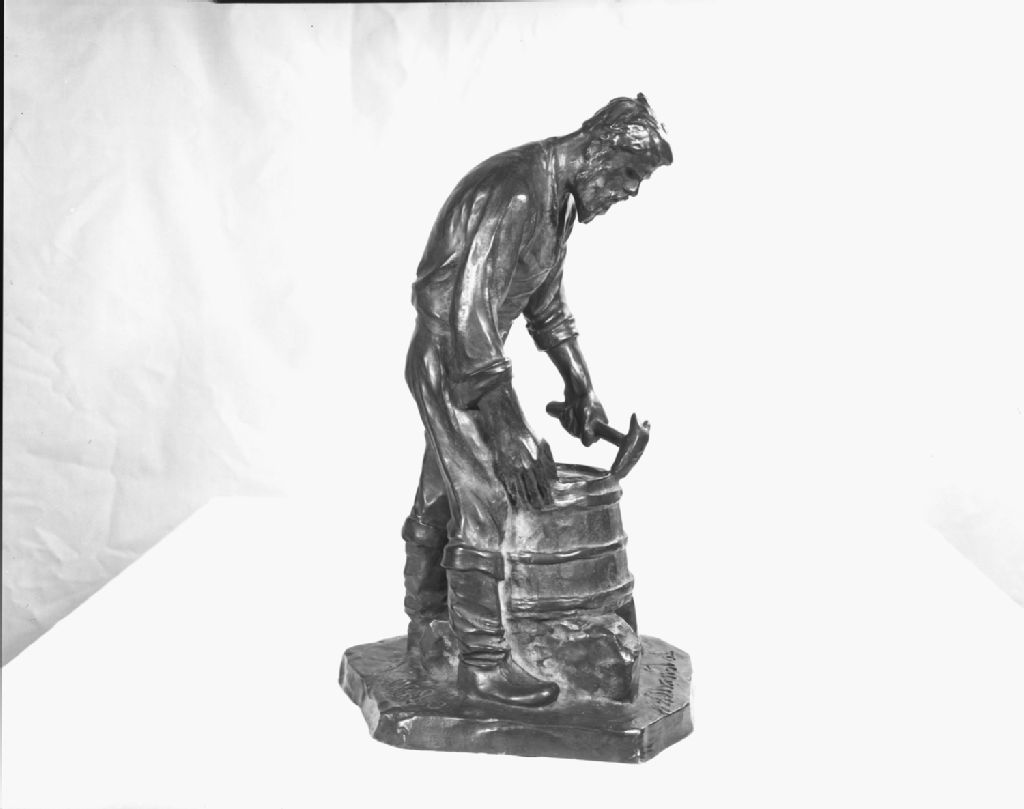 Le tonnellier par Alfred Laliberté au Musée de la province, 1950, Archives nationales à Québec, Fonds Ministère de la Culture et des Communications, (03Q,E6,S7,SS1,D2,P82214), Neuville Bazin.