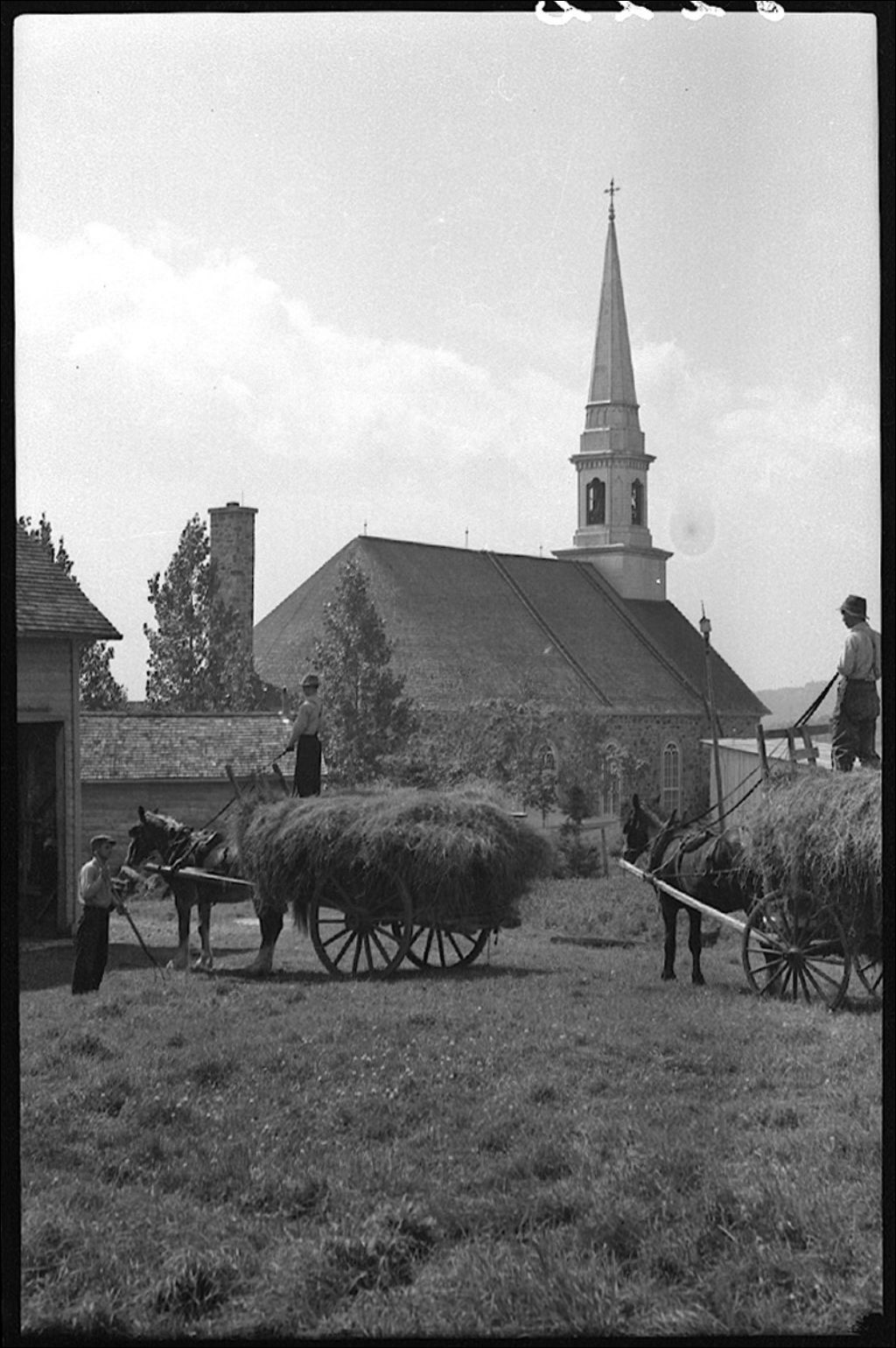 Église et scène champêtre au village de Saint-Fidèle, comté de Charlevoix