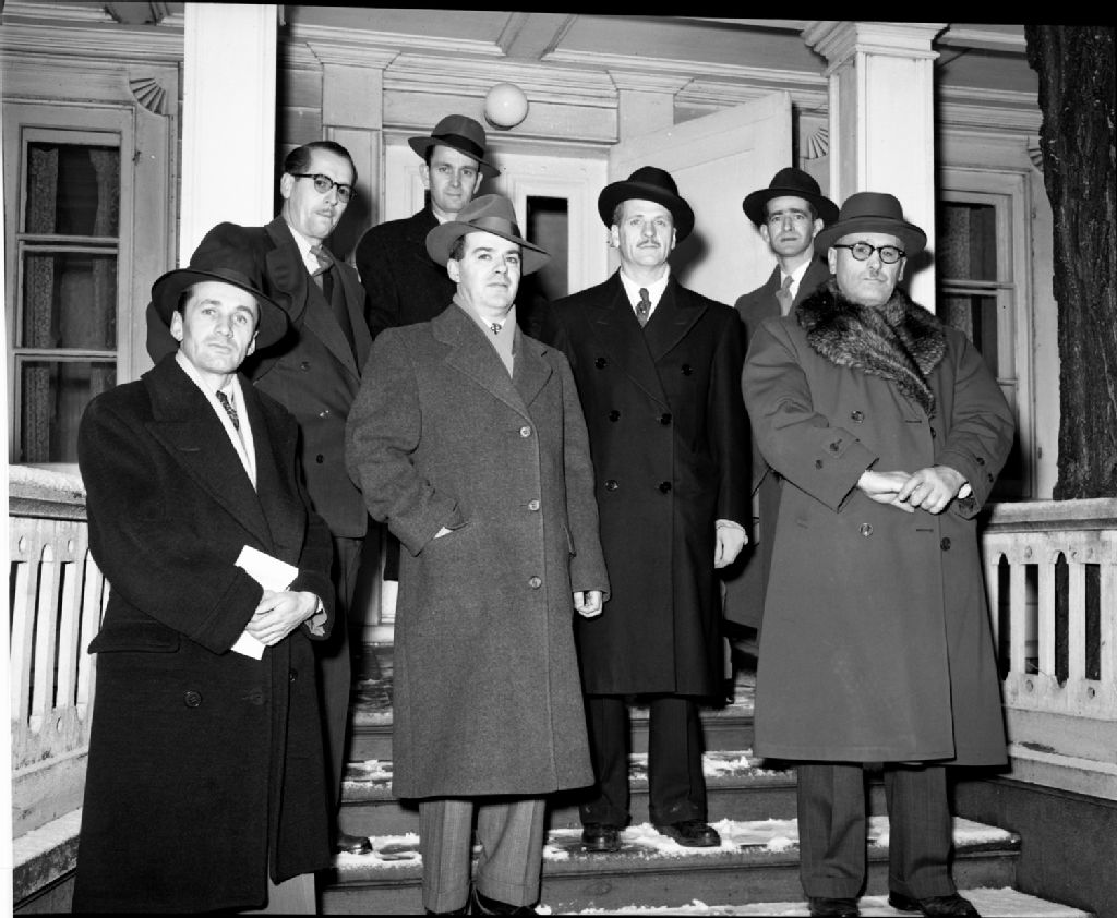 Groupe d'officiels sur le perron de la maison de Sir Thomas Chapais. Saint-Denis de Kamouraska