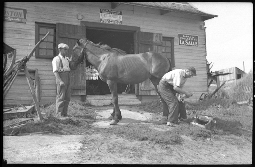 Forgeron ferrant un cheval à Saint-Fidèle, comté de Charlevoix