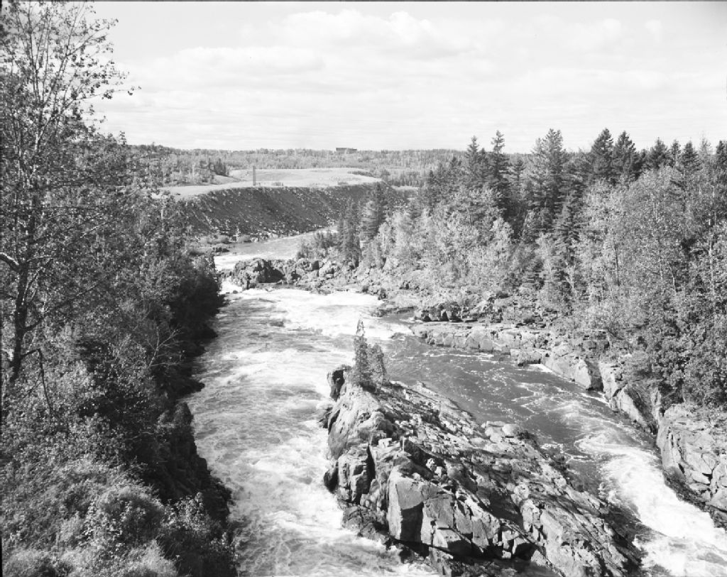 Rapides près du barrage de ShipShaw, 1950, Archives nationales à Québec, Fonds Ministère de la Culture et des Communications, (03Q,E6,S7,SS1,D2,P82587), Paul Carpentier.