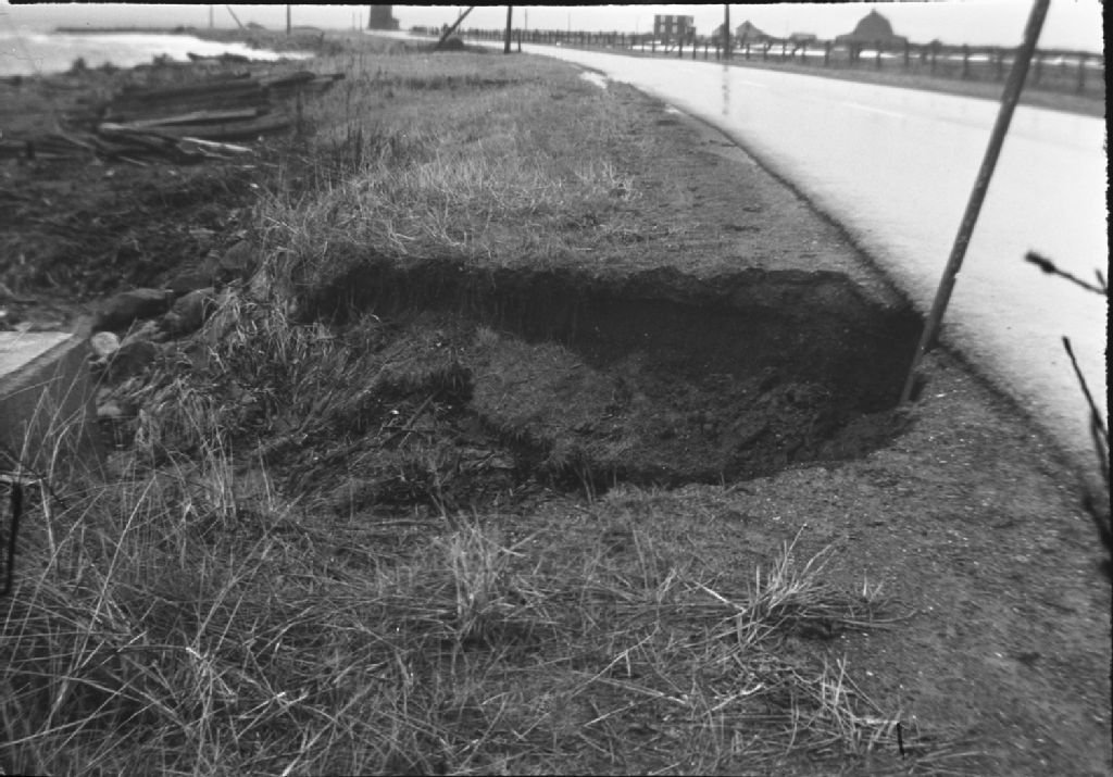 Érosion faite par le raz-de-marée du 11 décembre 1950, pont Auchu, route numéro 10, Sainte-Flavie