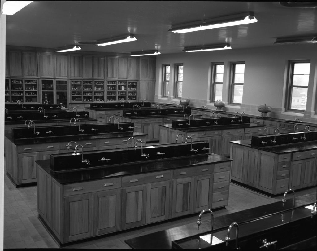 Laboratoire de chimie à Saint-Hyacinthe, 1950, Archives nationales à Québec, Fonds Ministère de la Culture et des Communications, (03Q,E6,S7,SS1,D2,P82813), Paul Carpentier.
