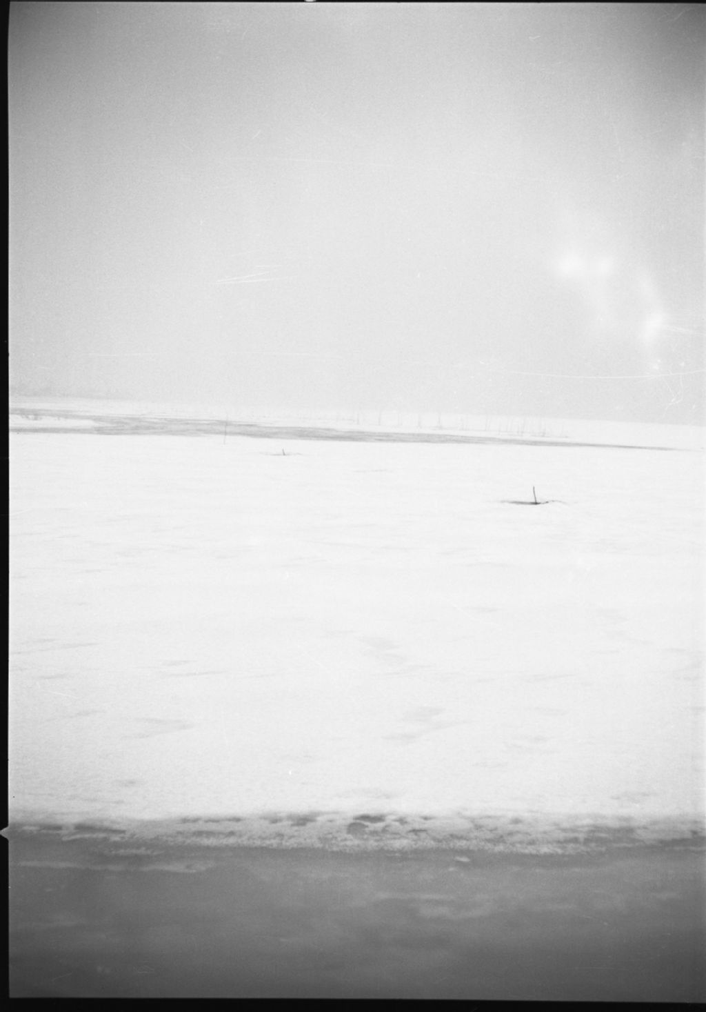 Piquets pour soutenir les filets tendus en-dessous de la glace pour la pêche commerciale. Sainte-Angèle de Laval.