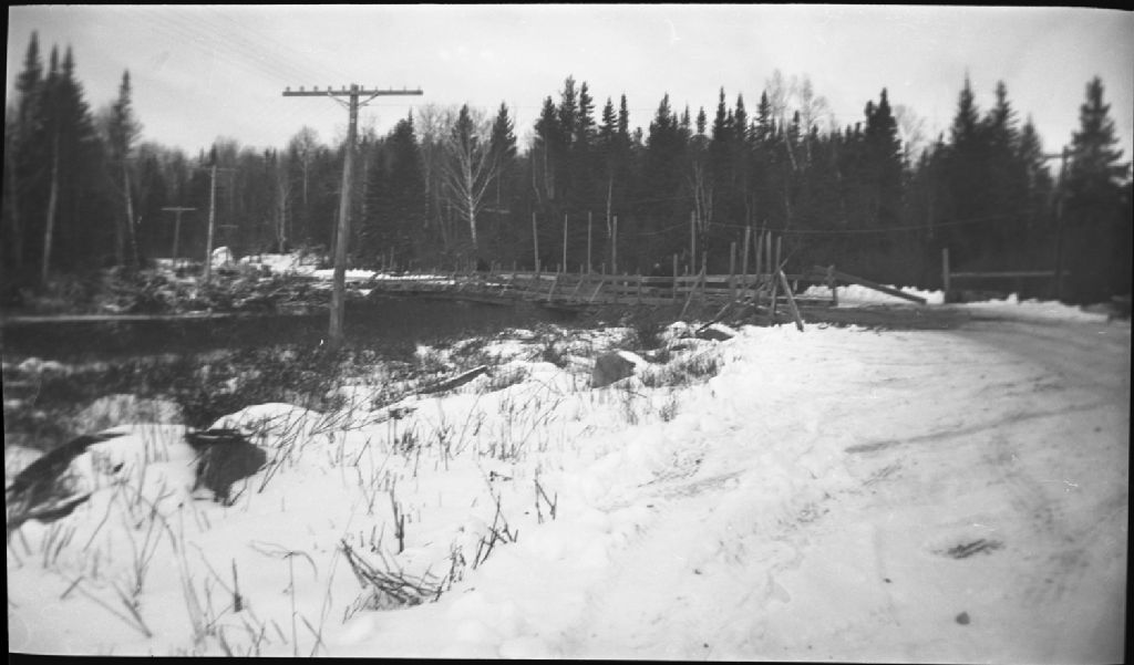 Pont temporaire en bois à 8 milles de la traverse de Bersimis-Tadoussac sur la route 15 à Bersimis, comté de Saguenay