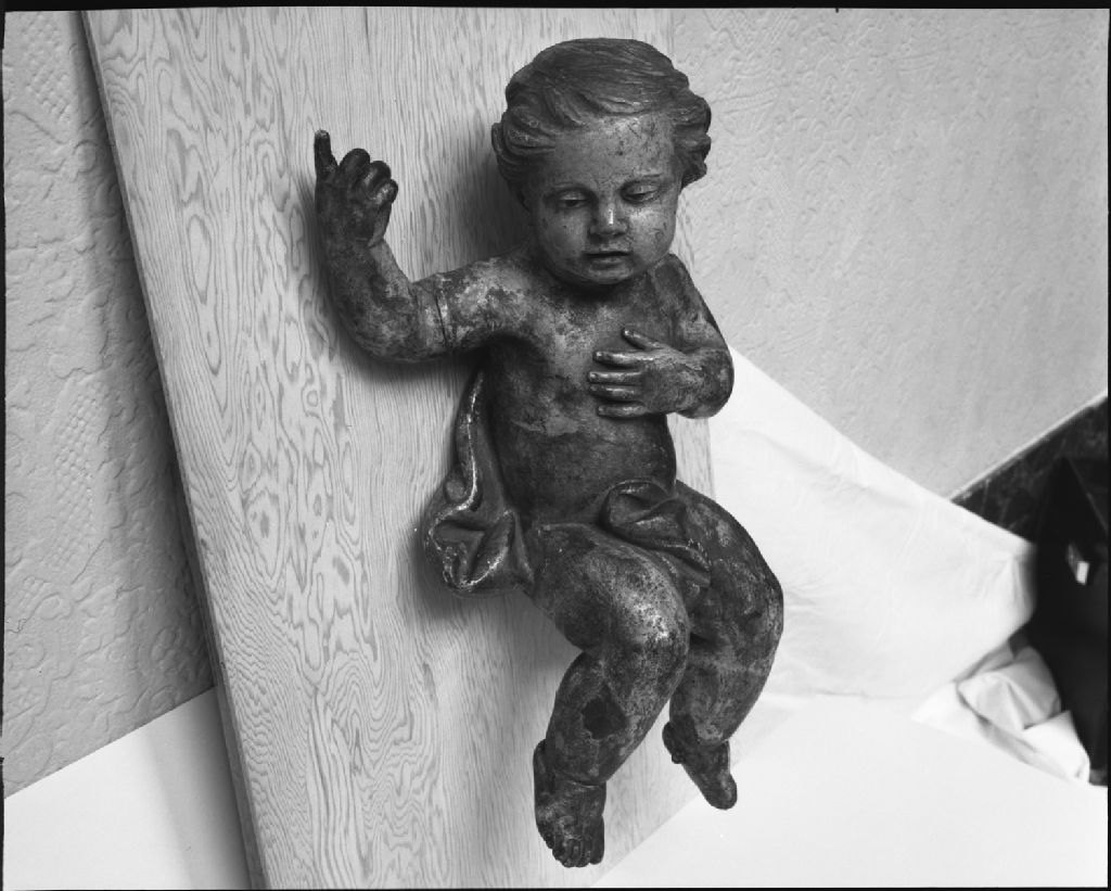 Chérubin en bois par Pierre Noël Levasseur au Musée de la province, 1951, Archives nationales à Québec, Fonds Ministère de la Culture et des Communications, (03Q,E6,S7,SS1,D2,P82951), Neuville Bazin.